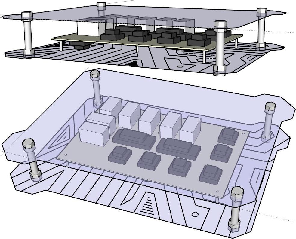 I used mini-switches to make a little change to the original circuit (the blue line that I added on this circuit). With these switches, now I can select the chips’ behaviour: button or switch 😀