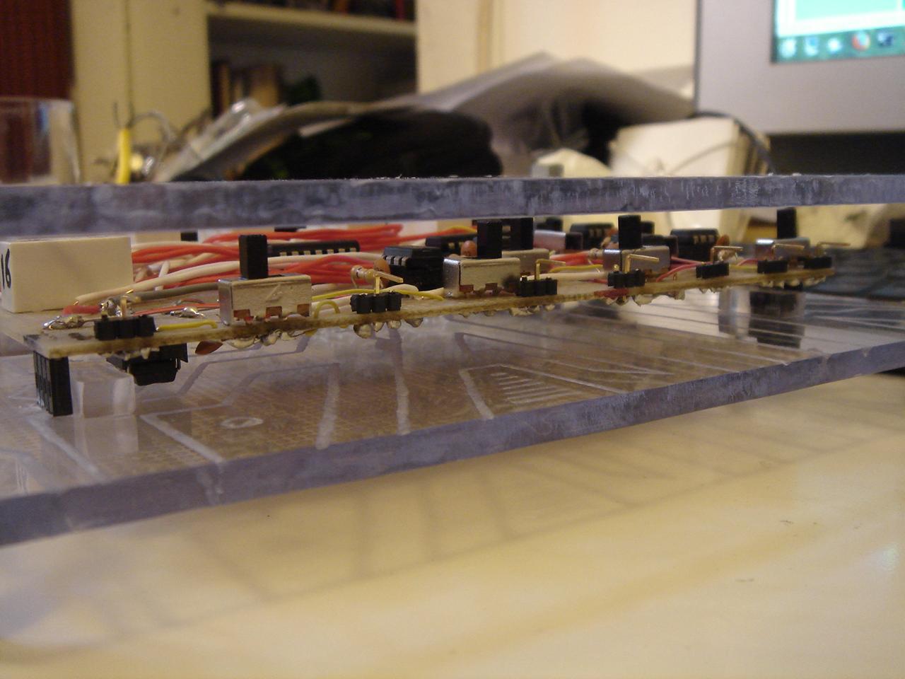 Now I must proceed with a support for the feedback LEDs, and a cable that connects the circuit with all the devices in the case.