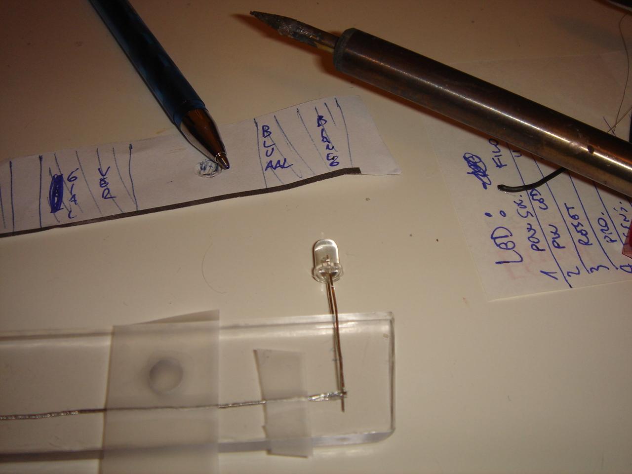 Then I decided the colors for the various functions, and I started soldering the LEDs on the polycarbonate bar: