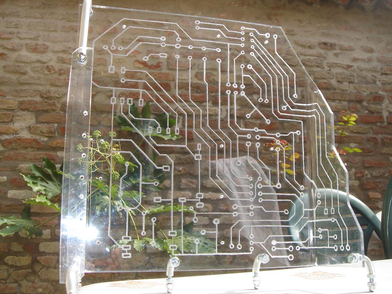 At this point I was tired of soldering, so I finished to draw the fake circuit to be engraved on the motherboard structure. This is the result: