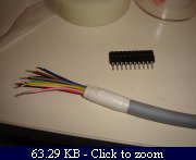 Then I soldered the 16-pole cable to the circuit connector (the bigger black wire in the pic is the metallic shielding of the cable, which I use as another wire because I needed 17 wires and not 16):