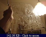 I downloaded some printed circuit images, and then I started to draw one on the mobo support, trying to keep the style of the real ones: